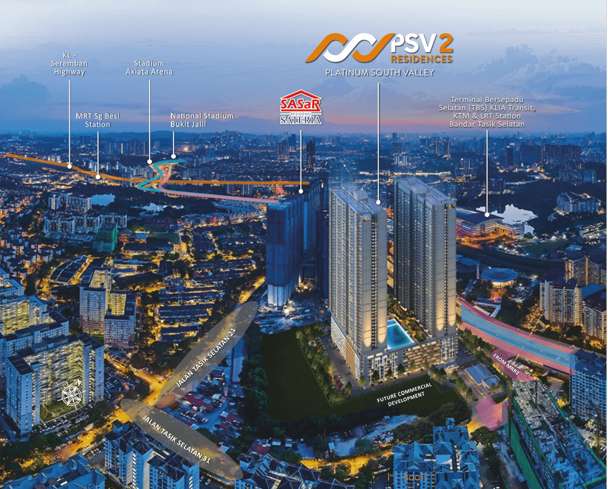 Located in Bandar Tasik Selatan, PSV 2 Residences offers modern, spacious homes just steps away from Terminal Bersepadu Selatan (TBS).